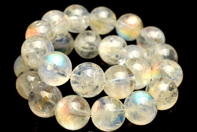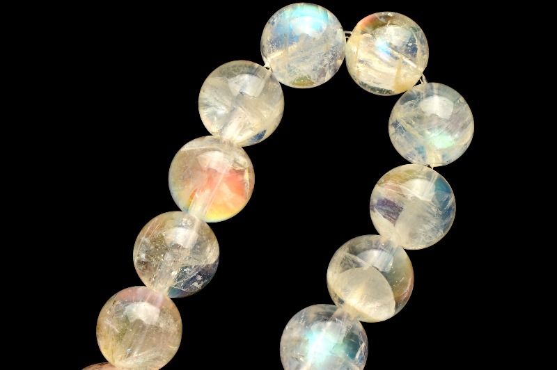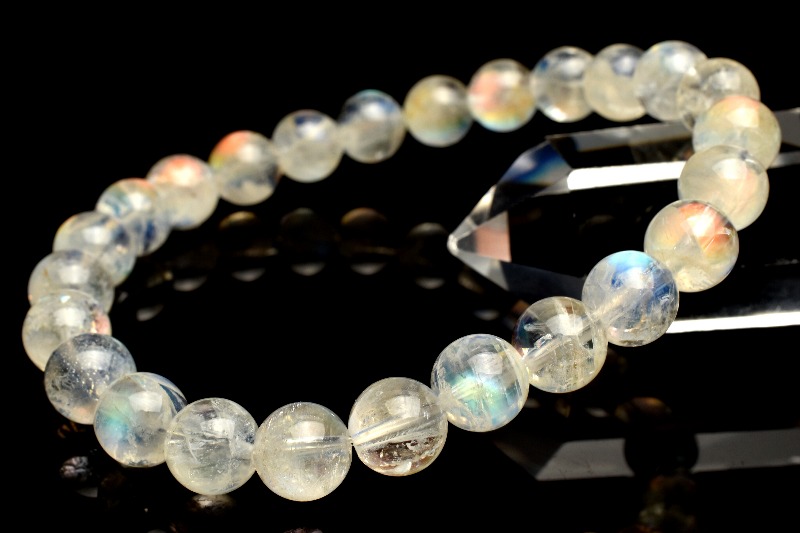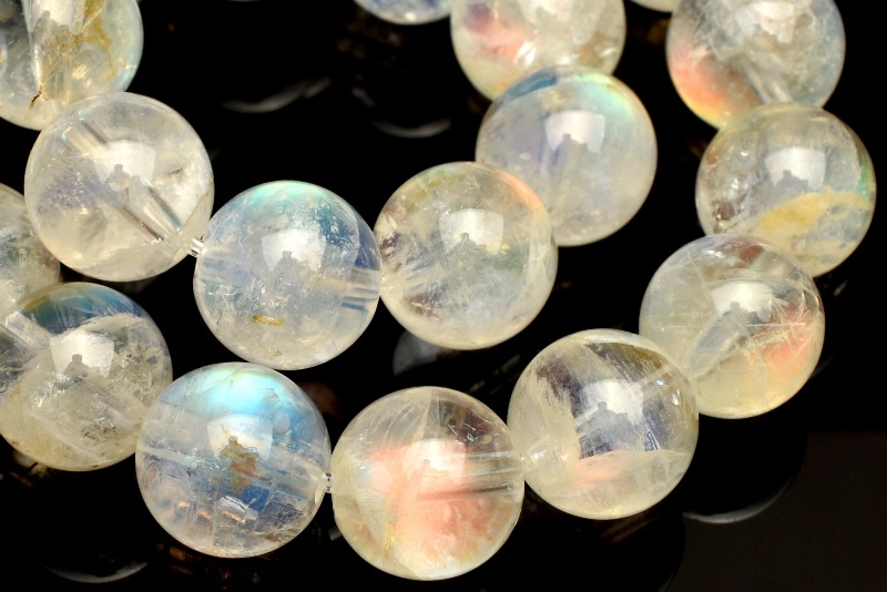 今回入荷分は非常に高品質でムーンストーン自体の透明感が高く、様々なカラーのレインボーシラーを一層ご堪能いただけます。