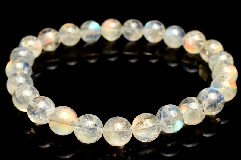 【1点物】AAA+オーロラシラー☆マダガスカル産 レインボームーンストーン 7.5mm ブレスレット _M9744