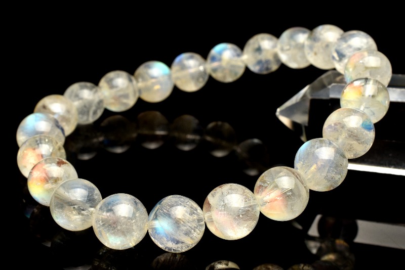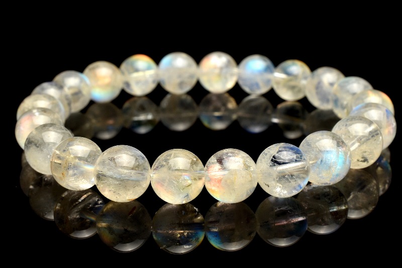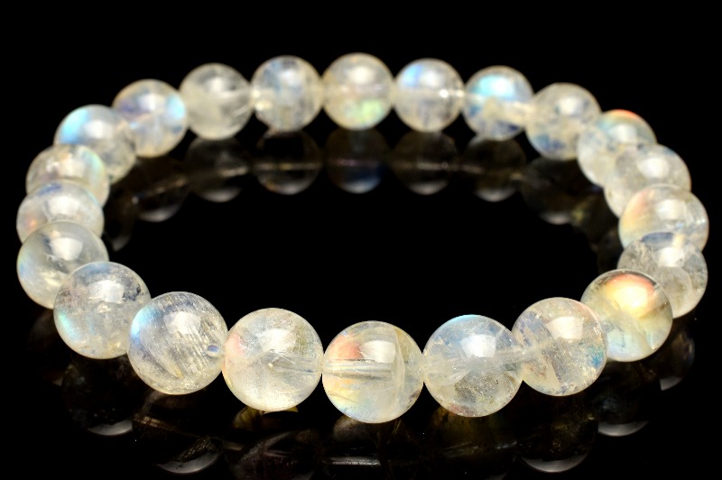 【1点物】AAA+オーロラシラー☆マダガスカル産 レインボームーンストーン 9mm ブレスレット _M9747