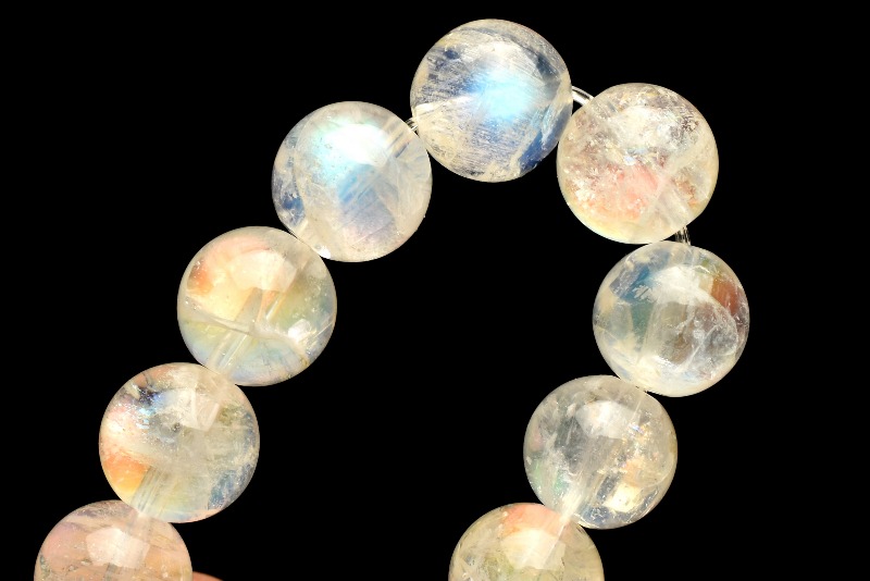 今回入荷分は非常に高品質でムーンストーン自体の透明感が高く、様々なカラーのレインボーシラーを一層ご堪能いただけます。
