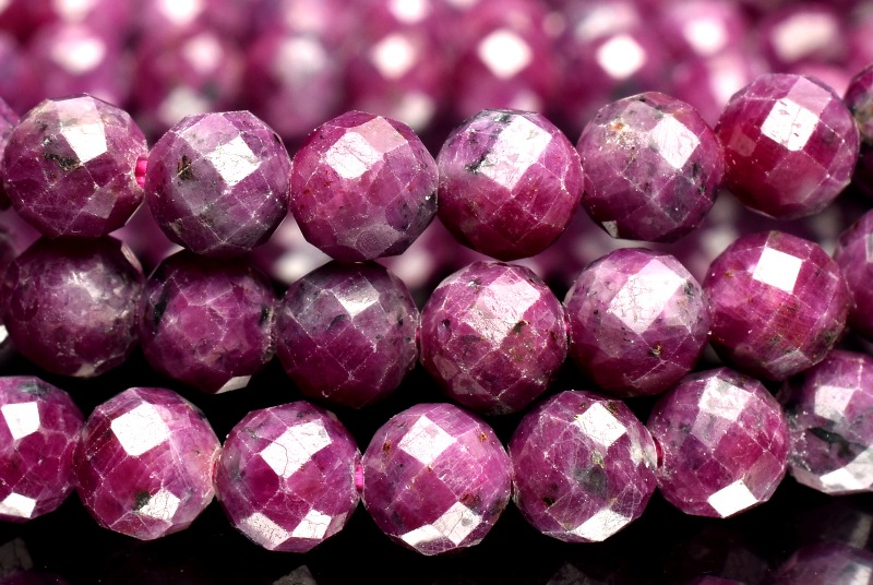 【1点物】マットな質感 ルビー 5.5mm 64面カット 3連タイプ ブレスレット _M9754