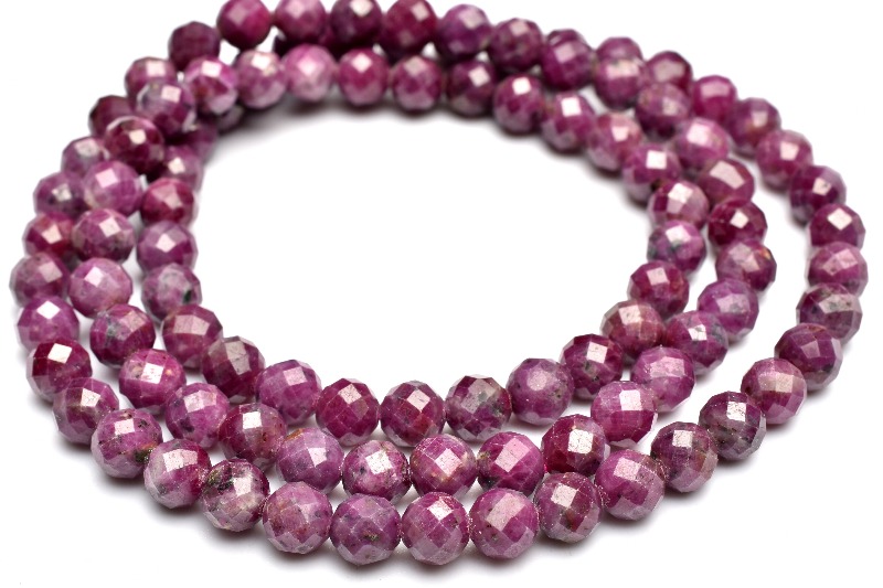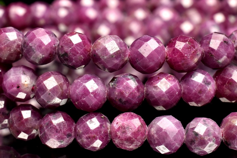 【1点物】マットな質感 ルビー 5.5mm 64面カット 3連タイプ ブレスレット _M9755