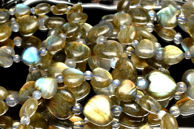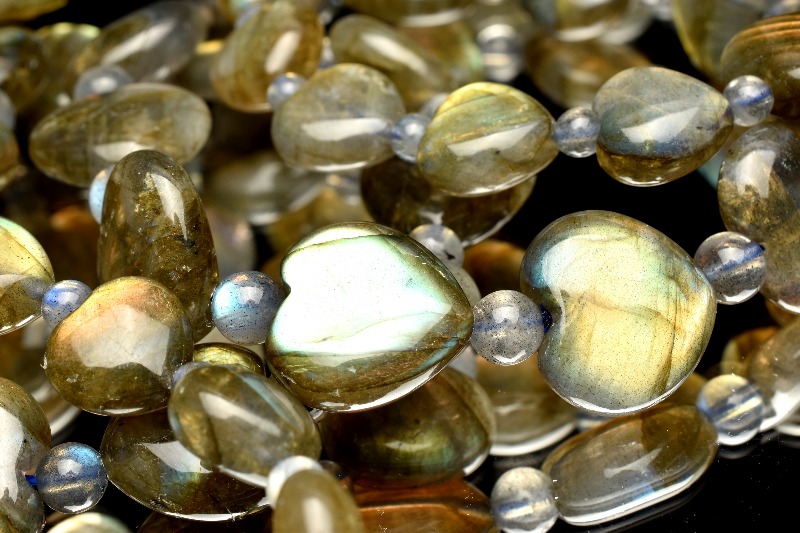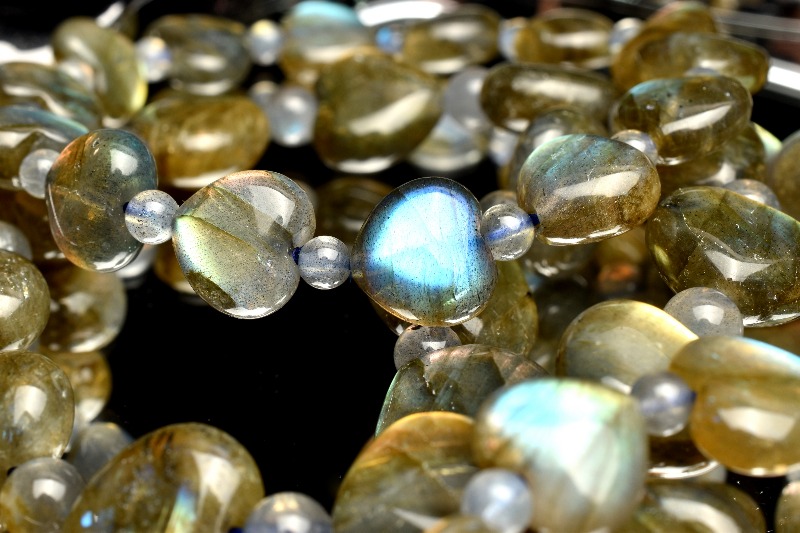 希少形状 ラブラドライト 9-10x10-11(丸玉4)mm ハート ブレスレット 1個売り _BG5567-1