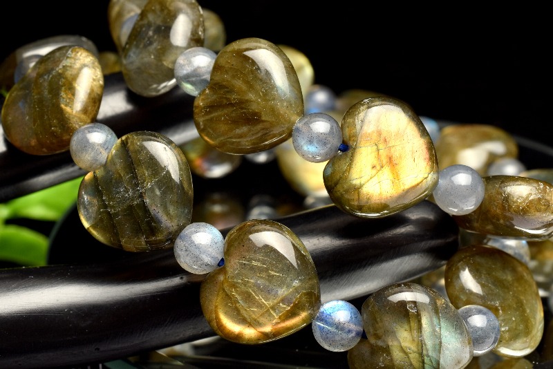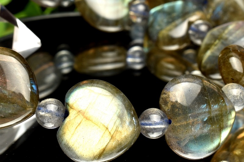 希少形状 ラブラドライト 12-14x14(丸玉6)mm ハート ブレスレット 1個売り _BG5567-4