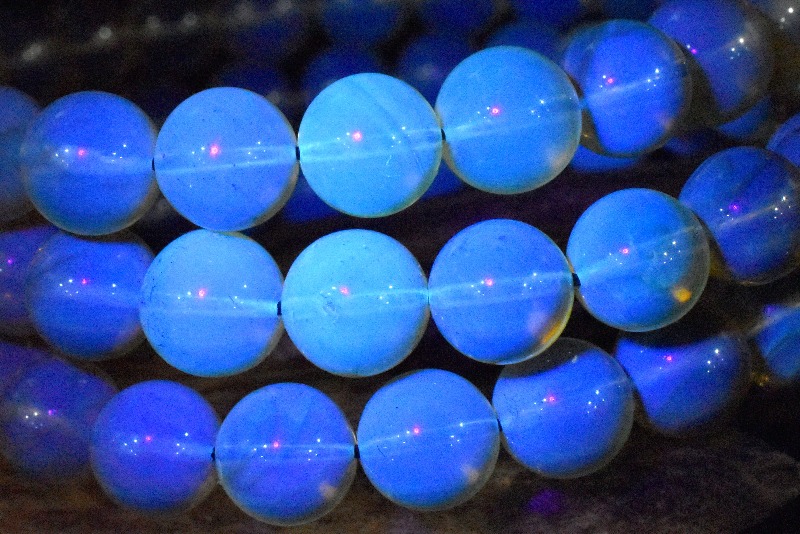 紫外線を当てると透明感のあるブルーに輝き神秘さを感じます。