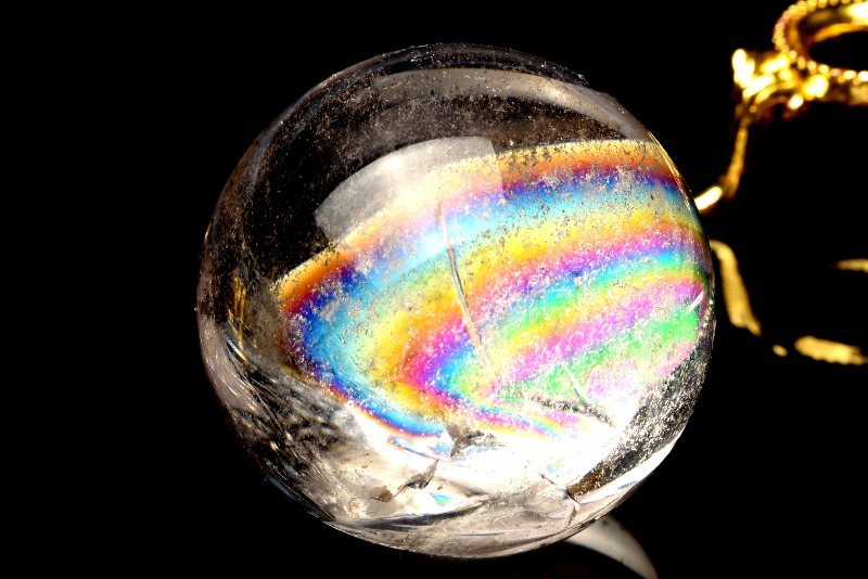 その名の通り、透明のクリスタル(水晶)の内部が虹色に輝く、たいへん美しい石です。