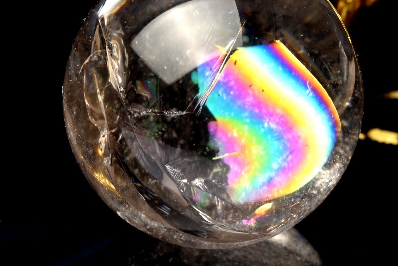 この美しい虹色がなぜ内包されたかというと、地殻の変動や外からの力が水晶に加わることで亀裂が生じ、それが虹色の分散光を放つためとされています。