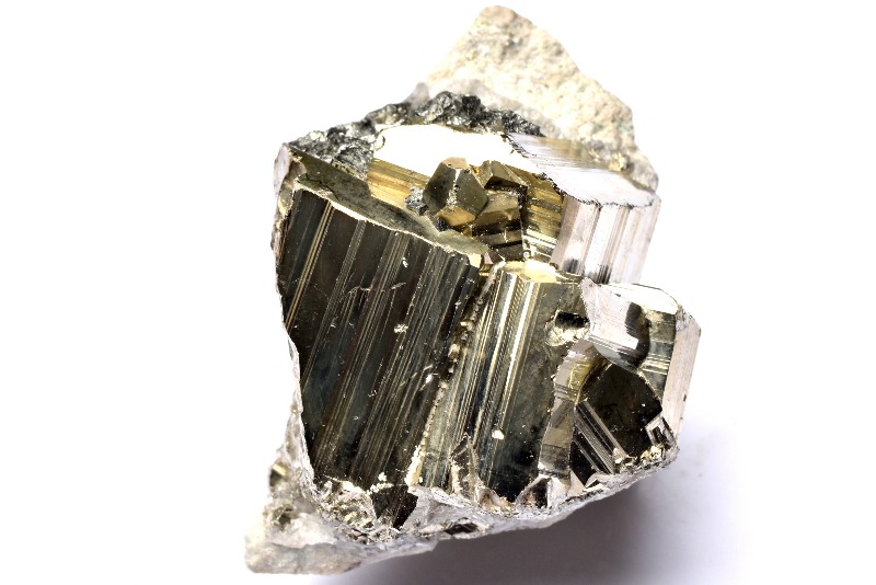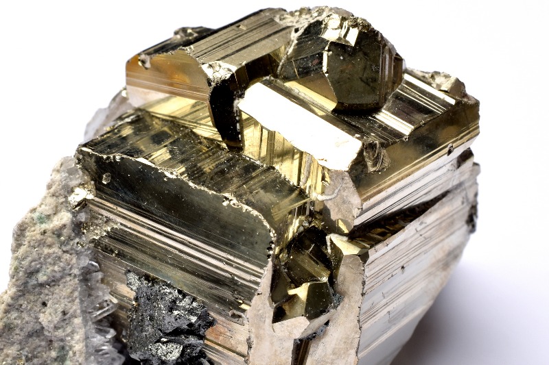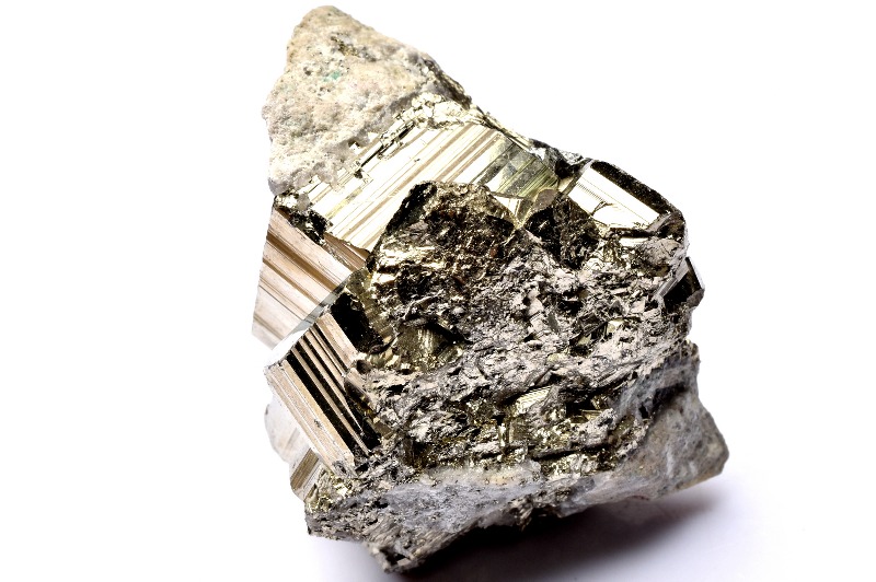 和名を「黄鉄鉱(おうてっこう)」と言い、鉄と硫黄からできている硫化鉱物です。