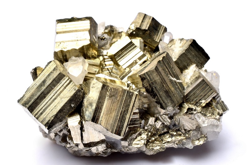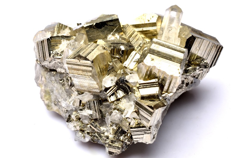 和名を「黄鉄鉱(おうてっこう)」と言い、鉄と硫黄からできている硫化鉱物です。