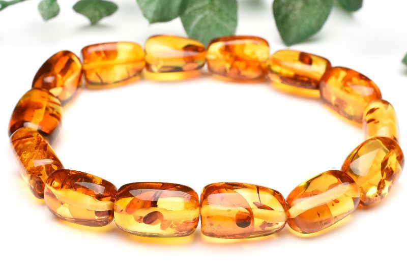 【1点物】UV発光!◇天然 アンバー(琥珀) 14-16x10-11mm タンブル ブレスレット _U5664