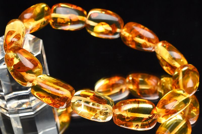 【1点物】UV発光!◇天然 アンバー(琥珀) 16-18x11-13mm タンブル ブレスレット _U5665