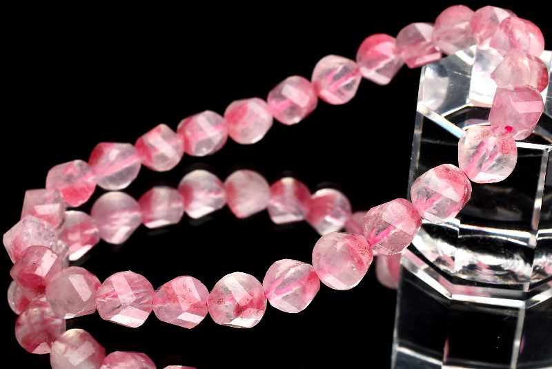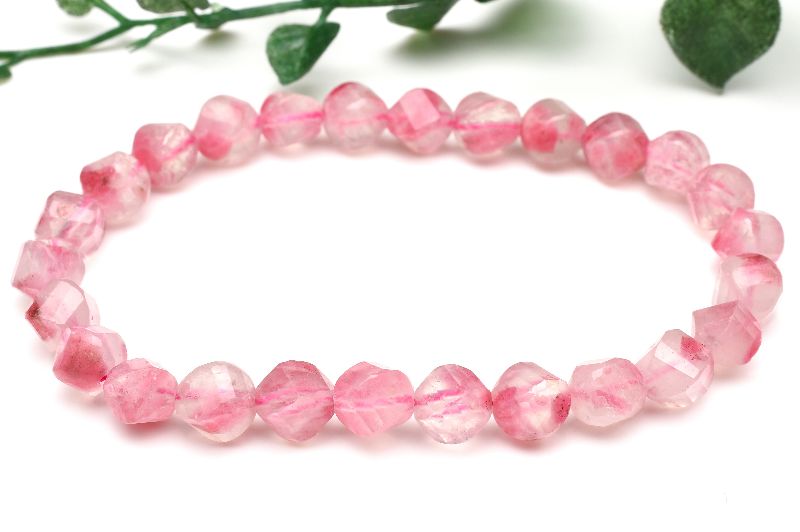 【1点物】希少◇花びらのよう ロードナイトシリカ 7-7.5mm 多面ツイストカット ブレスレット _U5670