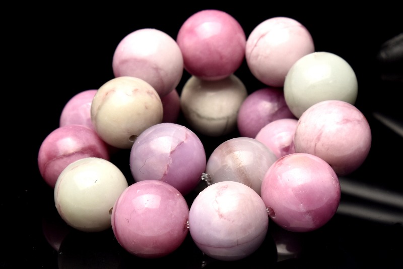 今回入荷分はミルキーながら高発色でまろやかな透過性もあり、珠によってアベンチュリンのような細かい煌めきも見られます。