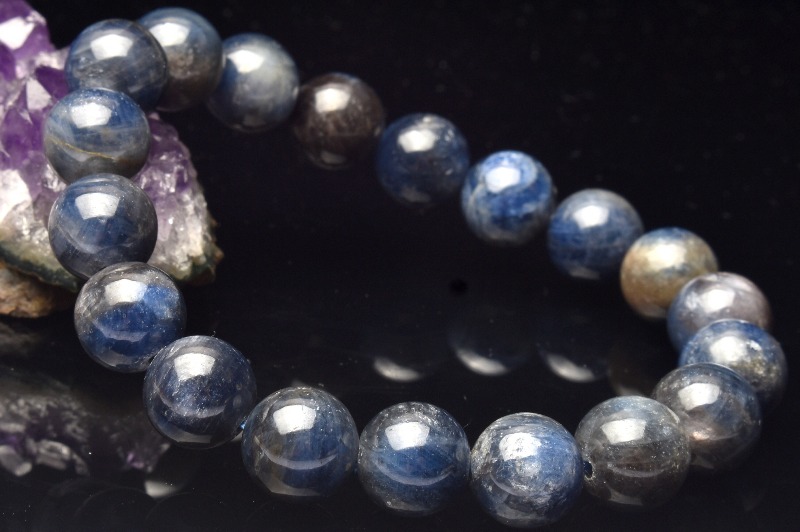 サファイアの結晶構造が見られる珠もあり原石好きのコレクター様にもオススメのブレスレットです。