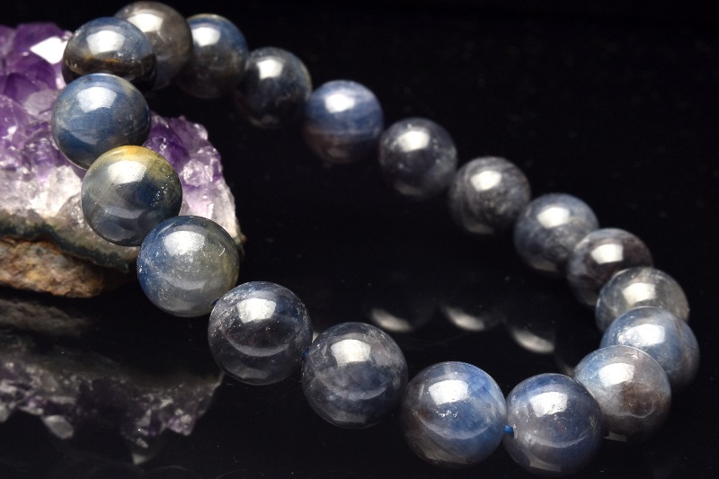 サファイアの結晶構造が見られる珠もあり原石好きのコレクター様にもオススメのブレスレットです。