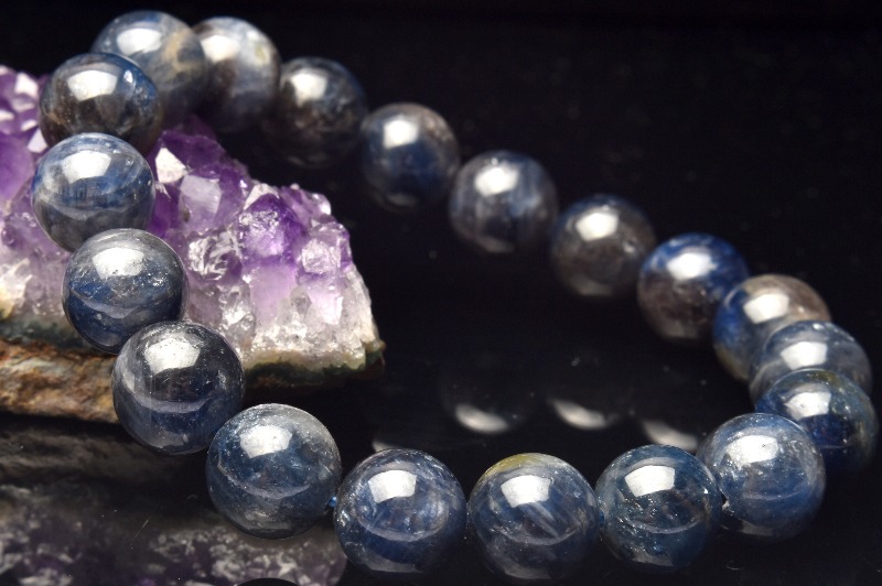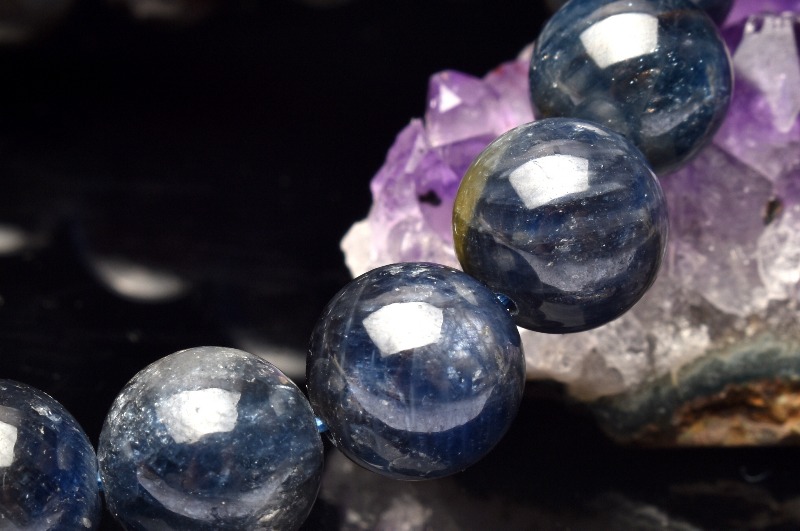 サファイアの結晶構造が見られる珠もあり原石好きのコレクター様にもオススメのブレスレットです。