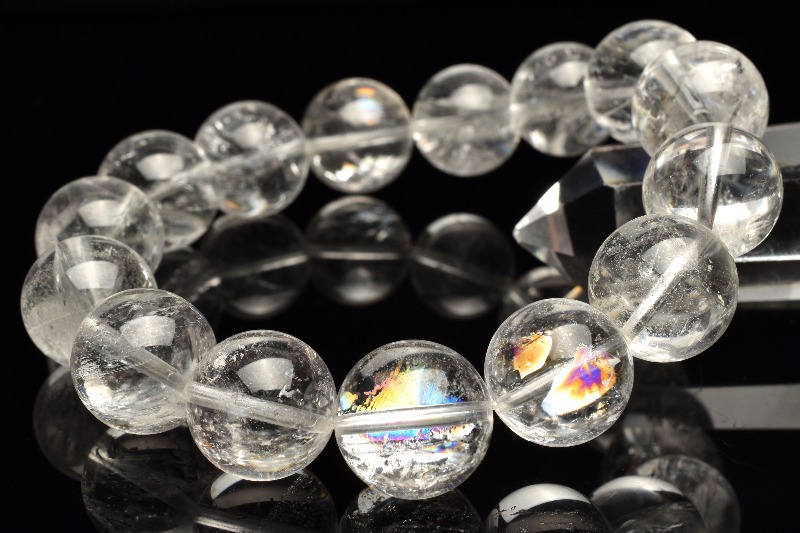 【1点物】希少虹入り◇コロンビア産 レムリアンシードクリスタル 14-15mm ブレスレット _M10004