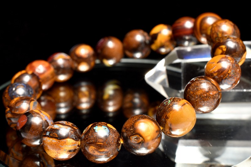 【1点物】幸せを呼ぶ石 ボルダーオパール 9.5mm ブレスレット _M10049