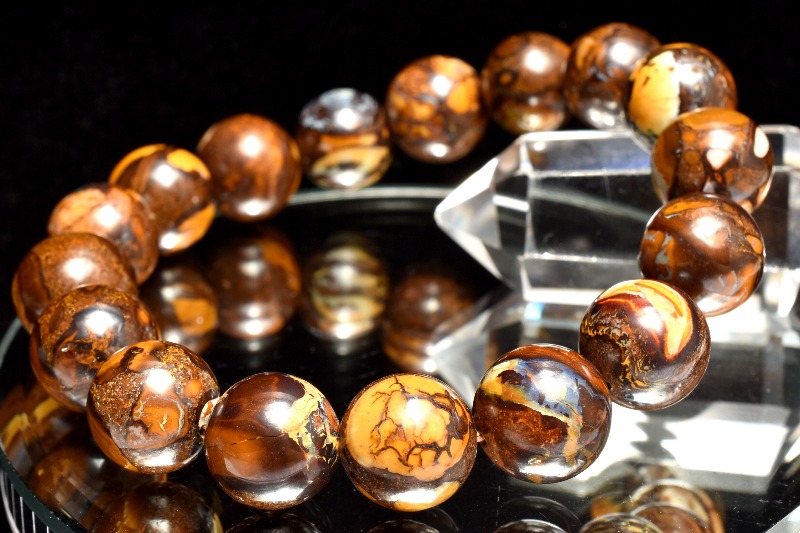 【1点物】幸せを呼ぶ石 ボルダーオパール 12mm ブレスレット _M10056