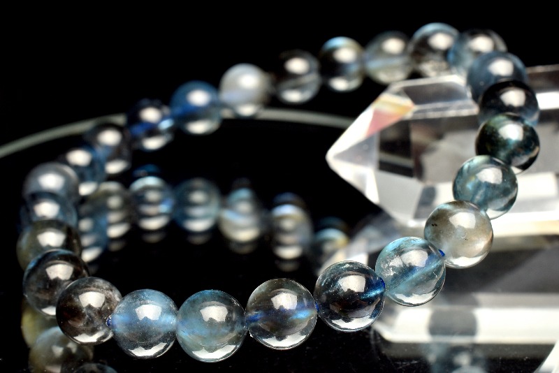 【1点物】南アフリカ産◇金属シラー ブラックアクアマリン 7.5mm ブレスレット _M10058