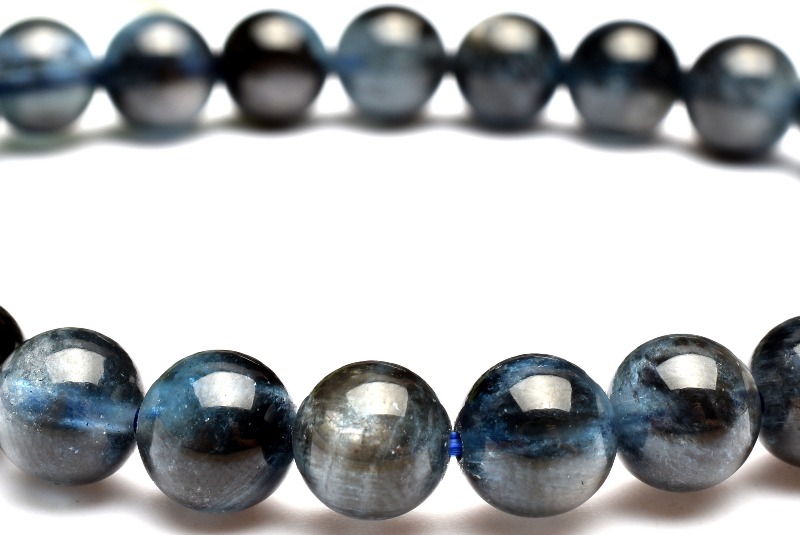 【1点物】南アフリカ産◇金属シラー ブラックアクアマリン 7.5mm ブレスレット _M10061