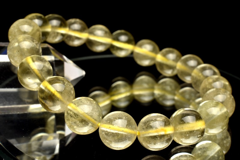 【1点物】透明感あり◇クリストバイライト内包 リビアングラス 9.5mm ブレスレット _M10169