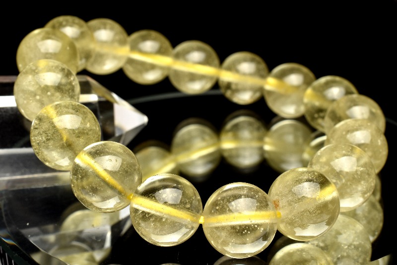 【1点物】透明感あり◇クリストバイライト内包 リビアングラス 11.5mm ブレスレット _M10175