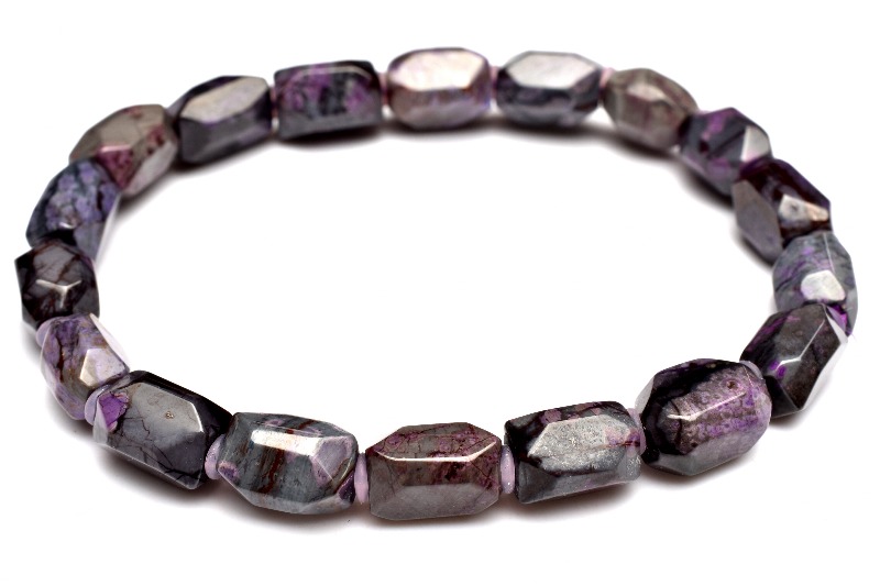 【1点物】希少形状◇高発色パープル スギライト(杉石) 8-10x6-7mm ライスカット ブレスレット _M10212