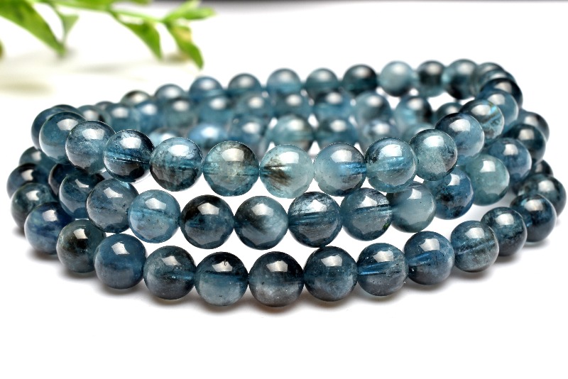 【1点物】南アフリカ産 ブラックアクアマリン 6.5mm 3連タイプ ブレスレット _M10225