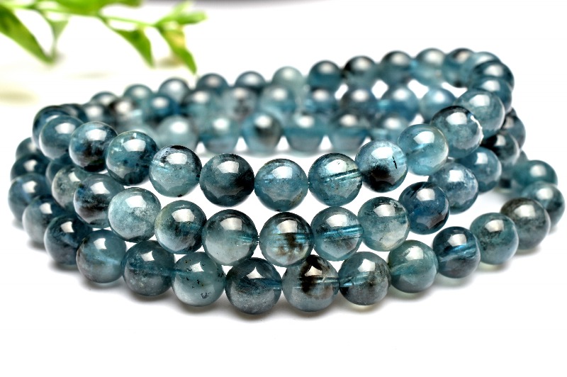 【1点物】南アフリカ産 ブラックアクアマリン 6.5mm 3連タイプ ブレスレット _M10226