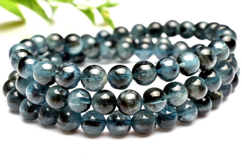 【1点物】南アフリカ産 ブラックアクアマリン 6.5mm 3連タイプ ブレスレット _M10229