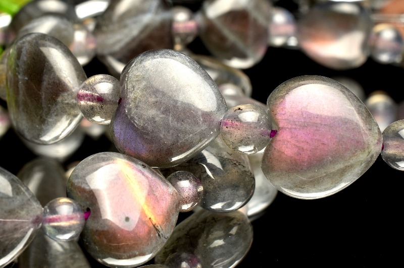 希少◇暖色シラー ピンクラブラドライト 10x11(丸玉3.5)mm ハート ブレスレット 1個売り _BG5608-1