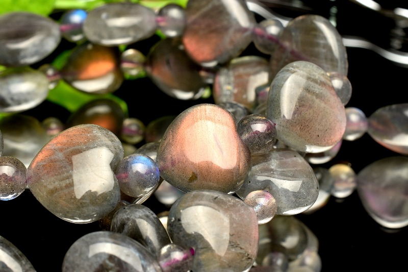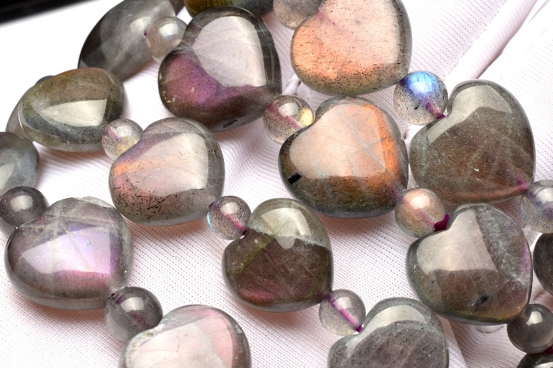 ラブラドライトといえばブルーのシラーが一般的ですが、今回入荷したラブラドライトはピンクやオレンジなど暖色系のシラーが浮かんでます。(※一部青みがかったシラーも入っています。)
