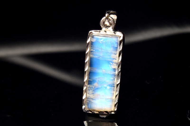 【1点物】Silver925◇インド産 ブルームーンストーン 16x6mm レクタングル ペンダントトップ _PC2420