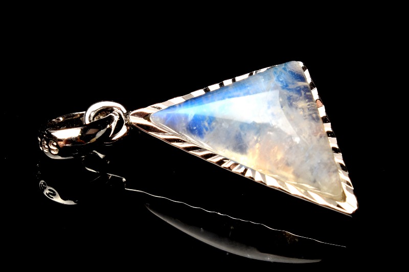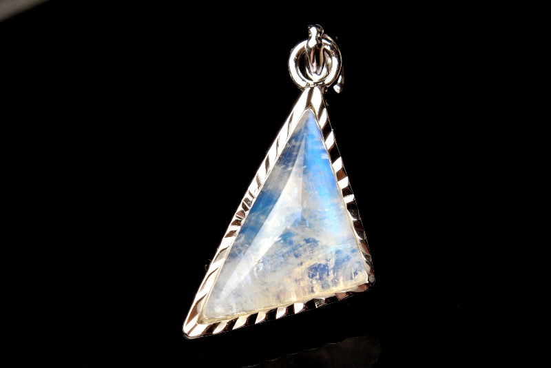【1点物】Silver925◇インド産 ブルームーンストーン 13x8mm トライアングル ペンダントトップ _PC2429