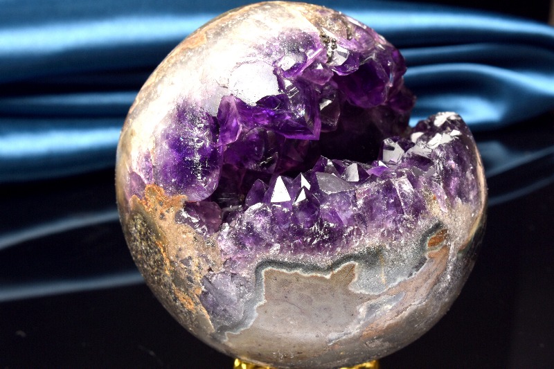 【1点物】笑口ジオード アメジスト 74x70x70mm 丸玉(台座付き) スフィア _CG6108【宅急便のみ】