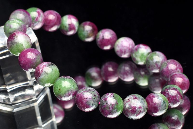 【1点物】レア共生 ルビーインゾイサイト 9mm ブレスレット _U5728