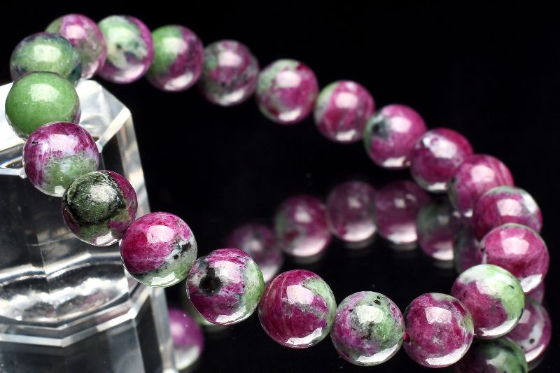 【1点物】レア共生 ルビーインゾイサイト 9mm ブレスレット _U5731