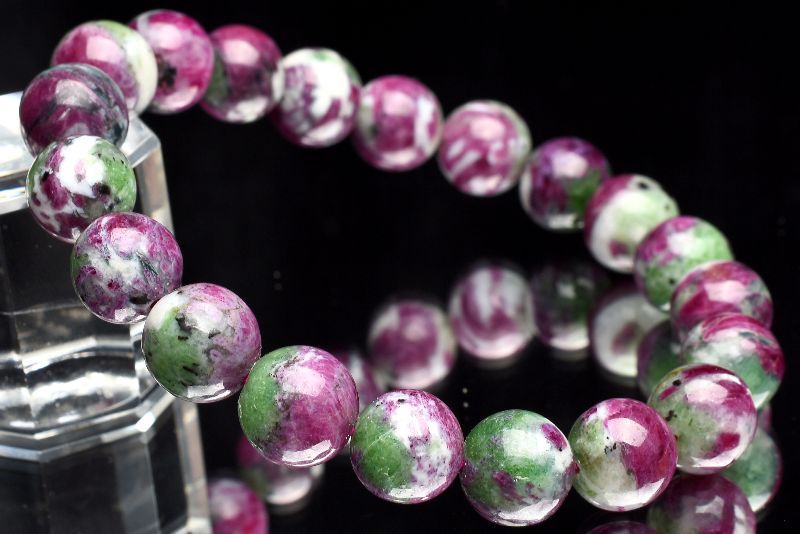 【1点物】レア共生 ルビーインゾイサイト 9.5mm ブレスレット _U5732