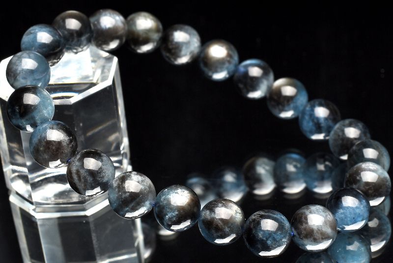 【1点物】南アフリカ産◇金属シラー ブラックアクアマリン 8.5mm ブレスレット _U5751