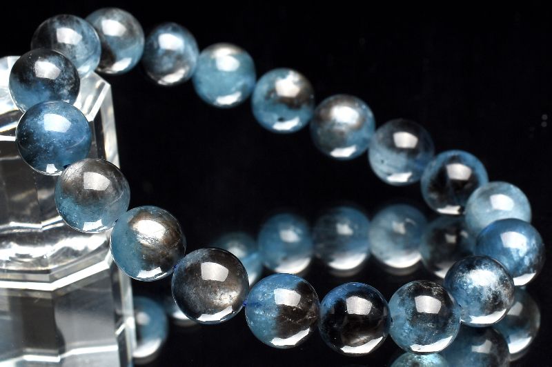 【1点物】南アフリカ産◇金属シラー ブラックアクアマリン 10mm ブレスレット _U5758