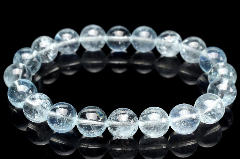 【1点物】透明感◇ライトブルー アクアマリン 9.5mm ブレスレット _U5772