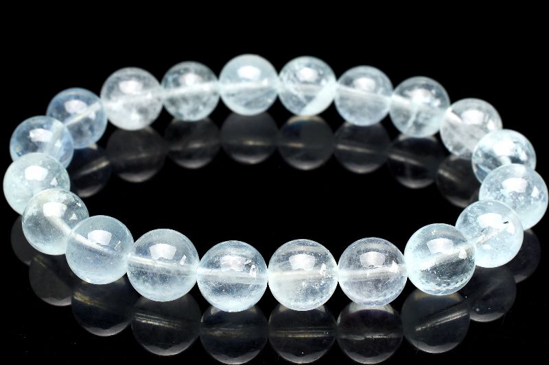 【1点物】透明感◇ライトブルー アクアマリン 9.5mm ブレスレット _U5776