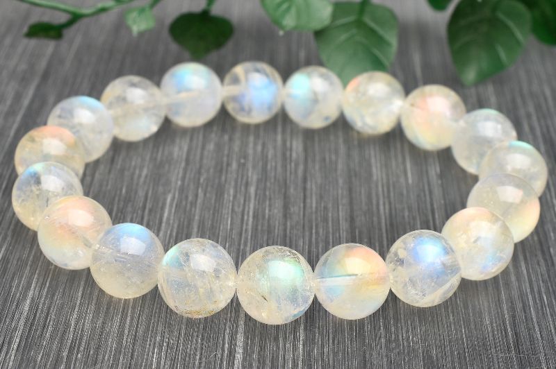 【1点物】AAAA+☆マダガスカル産オーロラシラー レインボームーンストーン 10mm ブレスレット _U5794