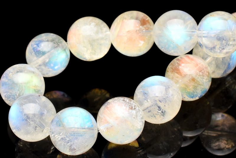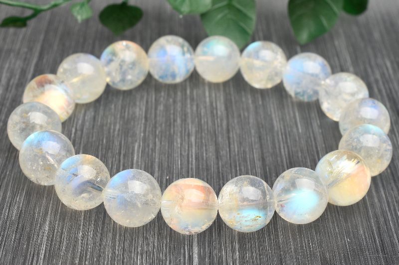 【1点物】AAAA+☆マダガスカル産オーロラシラー レインボームーンストーン 11mm ブレスレット _U5795