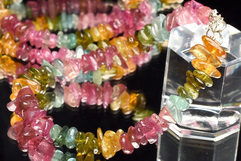 特徴・意味透明感もさることながら、それぞれの色合いの鮮やかさが目をひくさざれトルマリンのブレスレットを入荷しました。