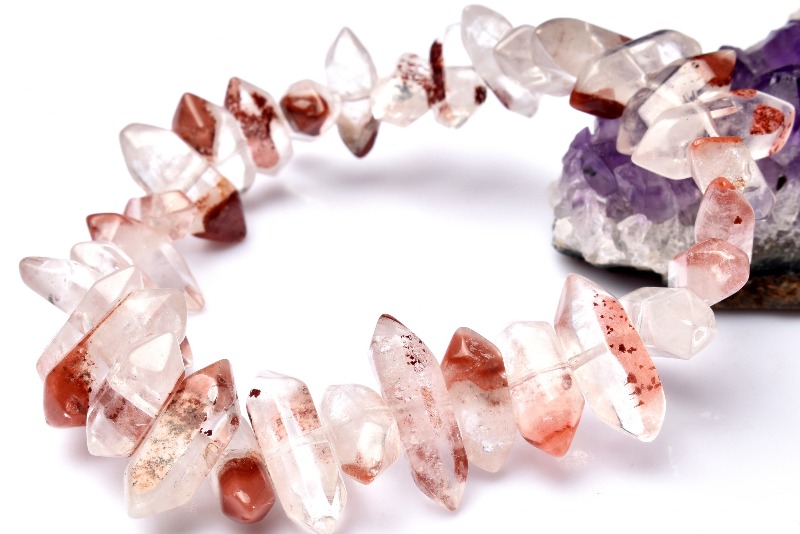 【1点物】希少形状 レッドファントムクォーツ 5-6x12-20mm 両剣ポイント ブレスレット _MA26