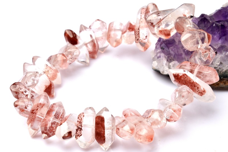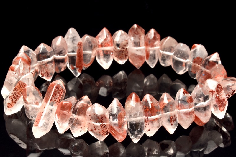 【1点物】希少形状 レッドファントムクォーツ 5-7x13-21mm 両剣ポイント ブレスレット _MA28
