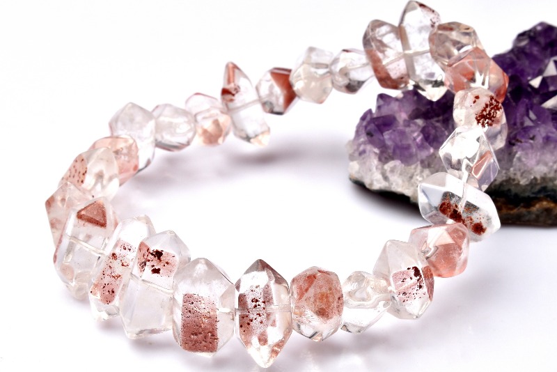 【1点物】希少形状 レッドファントムクォーツ 7-8x13-18mm 両剣ポイント ブレスレット _MA29
