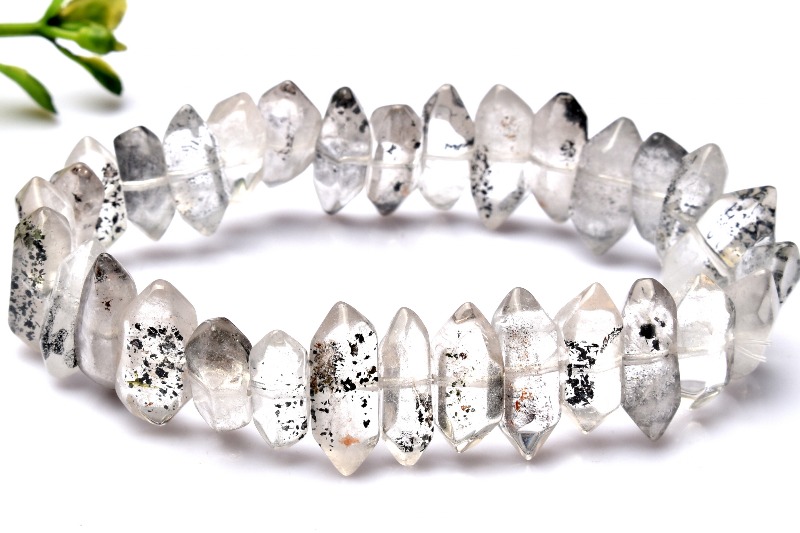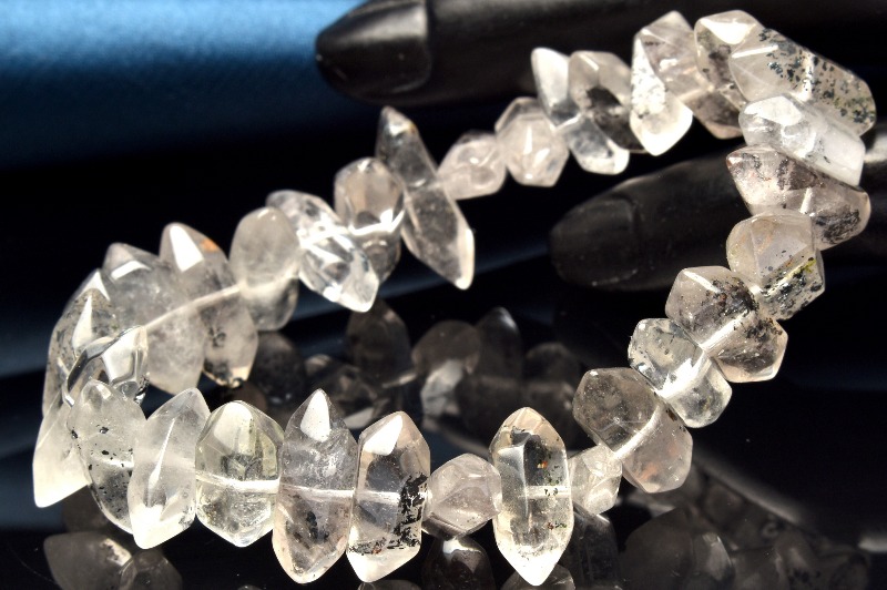 【1点物】希少形状 ブラックスーパーセブン(ブラックレピドクロサイト) 5-7x14-18mm 両剣ポイント ブレスレット _MA37